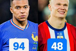 哈兰德与姆巴佩的国家队进球数一样,但姆巴佩所用场次为94场,哈兰德场次仅为姆巴佩的一半多一点。