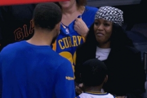 本场库里因脚踝伤势作壁上观,但他还是在赛前积极配合球迷合影留念,小球迷母亲露出了欣慰的笑容。