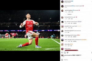 本场比赛马丁内利破门锁定胜局,赛后他也在社媒晒出本场庆祝进球照片,配文写道:“重回聚光灯下!