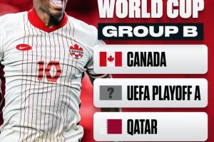 世界杯B组为:加拿大、欧洲区附加赛球队A、卡塔尔、瑞士