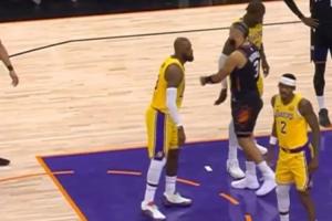 GIF-詹姆斯罚球间隙与队友击掌狄龙跑来凑热闹!