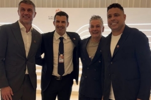 巴乔晒出与大罗、马尔蒂尼以及菲戈的合照,四位传奇球星同款。