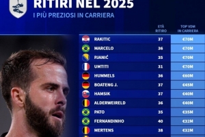 体育资讯1月3日讯 德国转会市场统计了2025年退役球员的历史最高身价,并列出榜单,拉基蒂奇、马塞洛、皮亚尼奇、乌姆蒂蒂7000万欧居首。